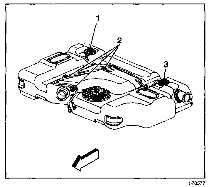 NOTE: Refer to Damage to Fuel Tank Straps Notice in Service Precautions.