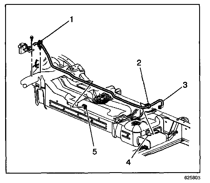 12. Connect the EVAP vent pipe to the fuel tank clip (5).