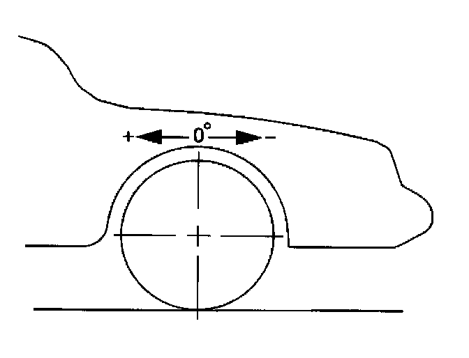 Caster is the tilting of the uppermost point of the steering axis either forward or backward (when viewed from the side of the vehicle). A backward tilt is positive (+) and a forward tilt is negative (-). Caster influences directional control of the steering but does not affect the tire wear and is not adjustable on this vehicle. Caster is affected by the vehicle height, therefore it is important to keep the body at its designed height. Overloading the vehicle or a weak or sagging rear spring will affect caster. When the rear of the vehicle is lower than its designated trim height, the front suspension moves to a more positive caster.