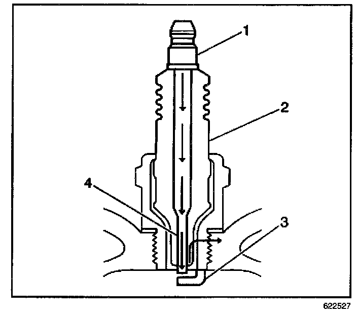 - Inspect for the correct spark plug torque. Refer to Ignition System Specifications. Insufficient torque can prevent correct spark plug operation. An over torqued spark plug, causes the insulator (2) to crack.
