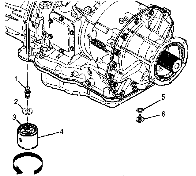 1. Remove drain plug (6) and drain plug seal (5). Drain the transmission fluid into a suitable container.