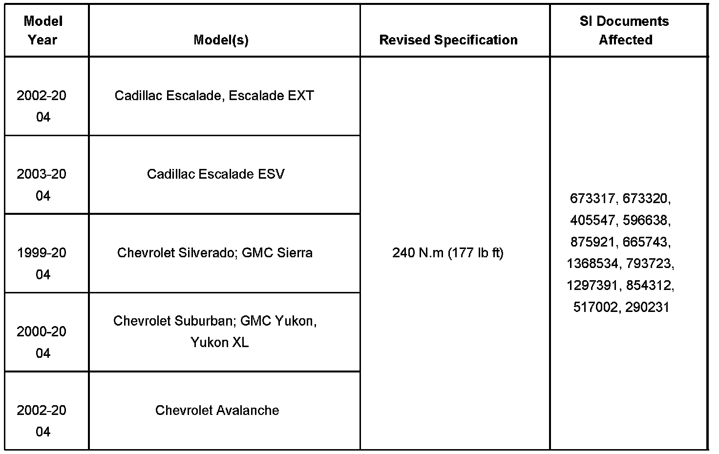 The torque specification for the wheel drive shaft nut has been revised as shown in the table.