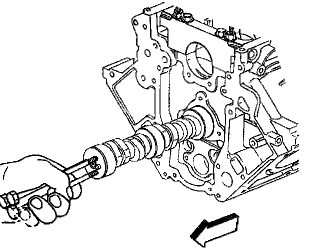 Notice: All camshaft journals are the same diameter, so care must be used in removing or installing the camshaft to avoid damage to the camshaft bearings.