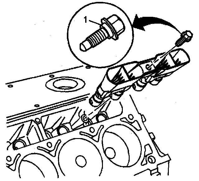 - Tighten the valve lifter guide bolt (1) to 12 Nm (106 inch lbs.).