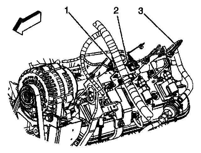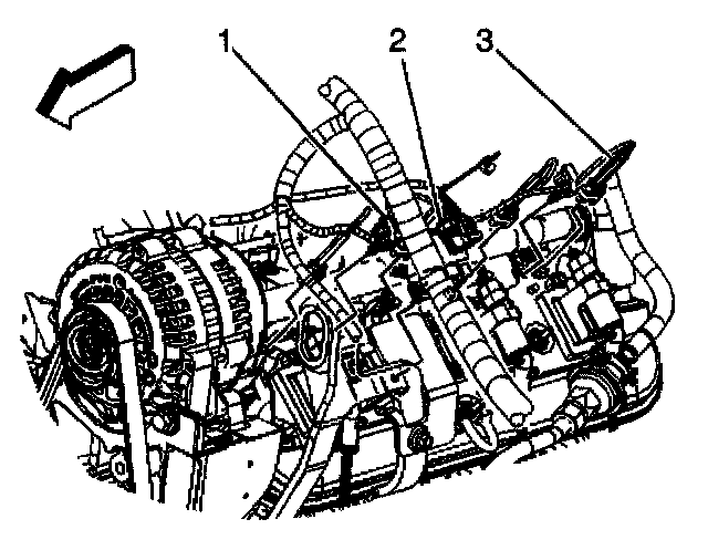 3. Disconnect the main electrical connector (2) to the ignition coil wire harness.