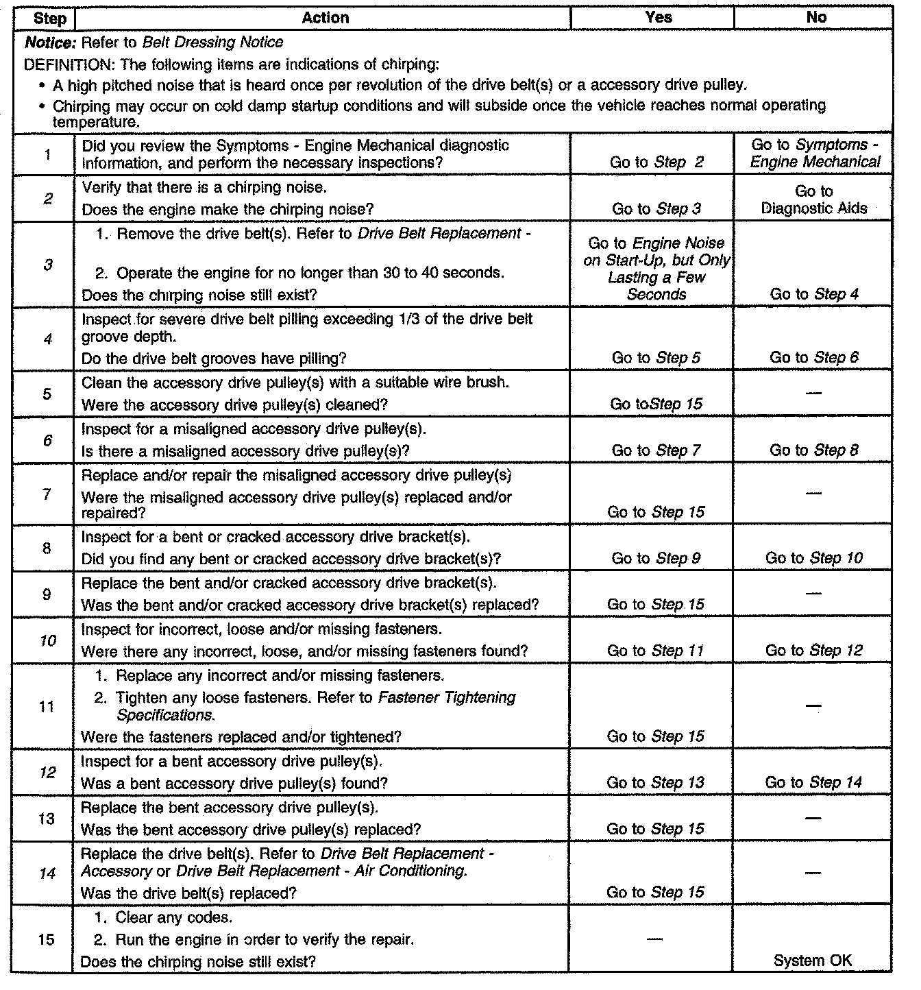 Drive Belt Chirping DiagnosisDiagnostic Aids,