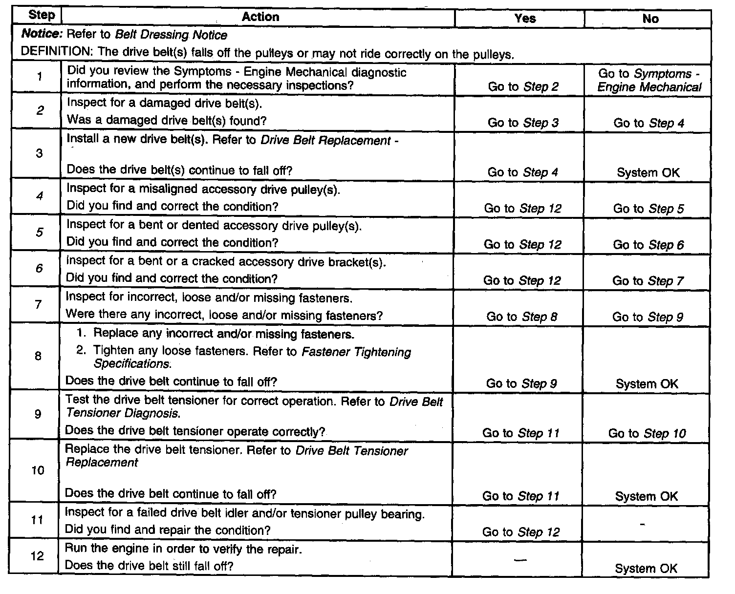 Drive Belt Falls Off DiagnosisDiagnostic Aids