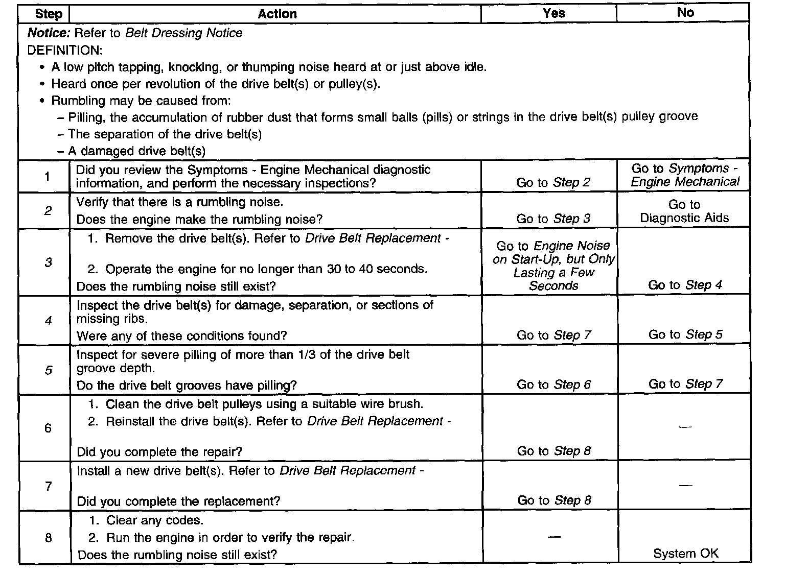 Drive Belt Rumbling DiagnosisDiagnostic Aids
