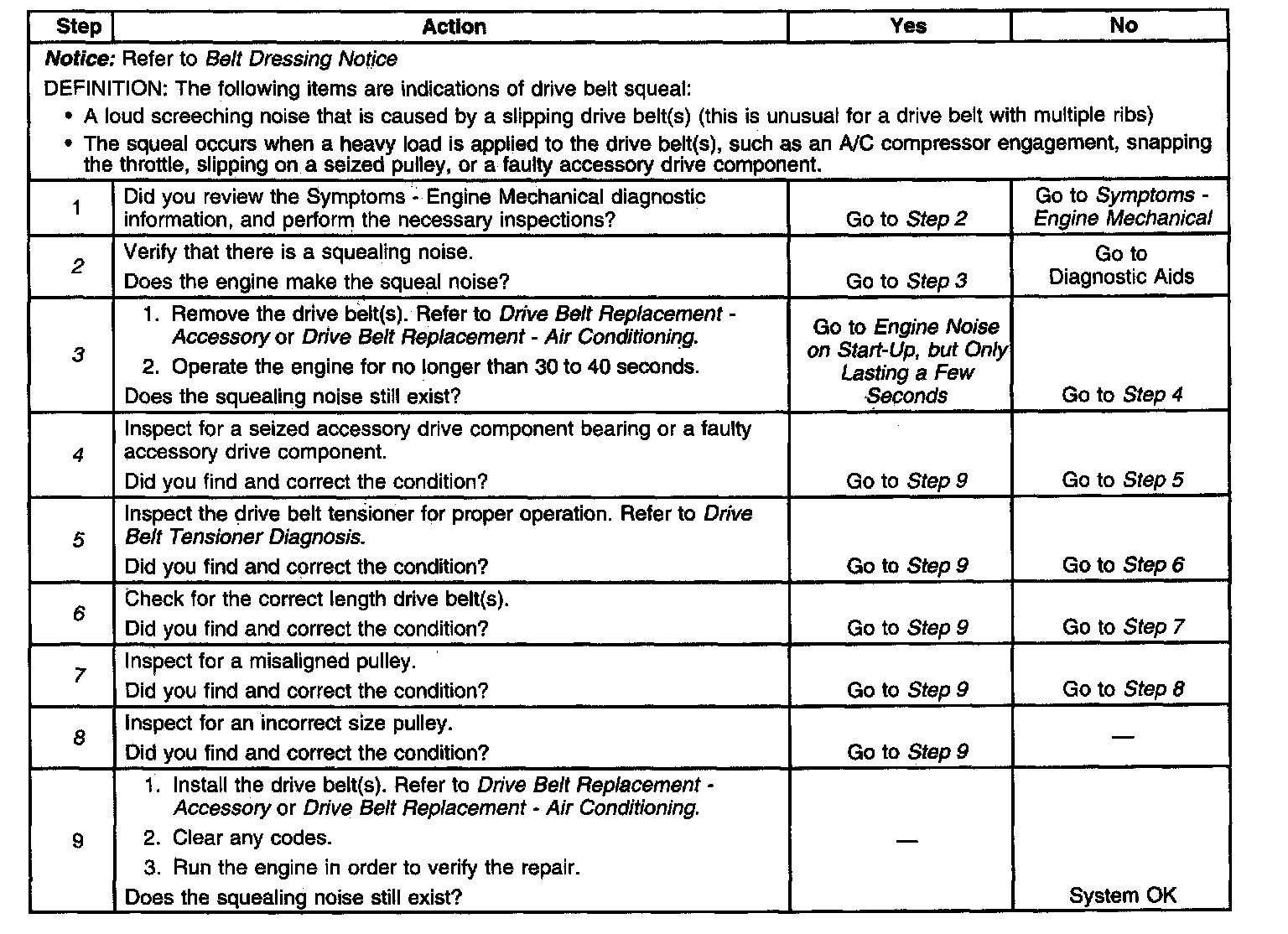 2. The squeal may not be engine related. This step is to verify that the engine is making the noise. If the engine is not making the noise do not proceed further in this table