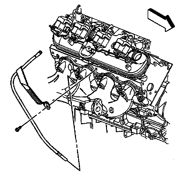 3. Install the oil level indicator tube behind the exhaust manifold.
