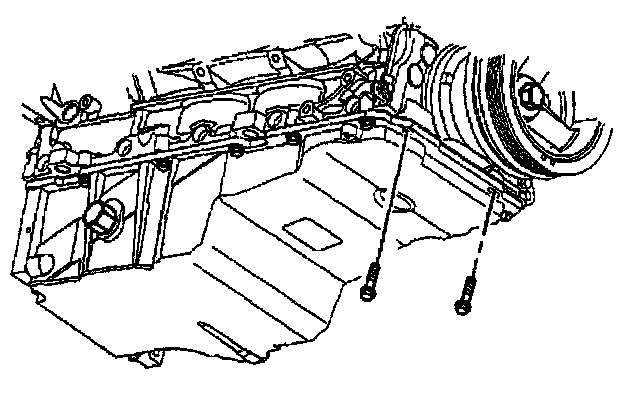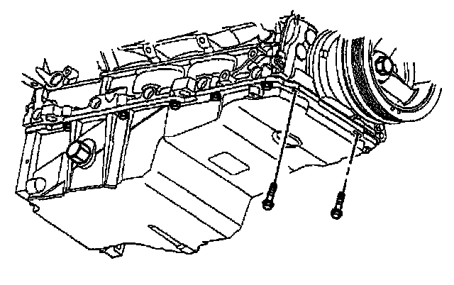 1. Apply a 5 mm (0.20 inch) bead of sealant GM P/N 12378190 or equivalent 20 mm (0.80 inch) long to the oil pan to engine block junction.