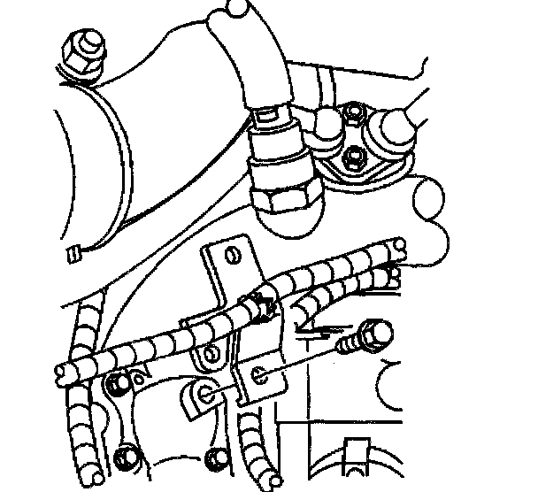 8. Install the bolt and wiring harness bracket to the thermostat housing.