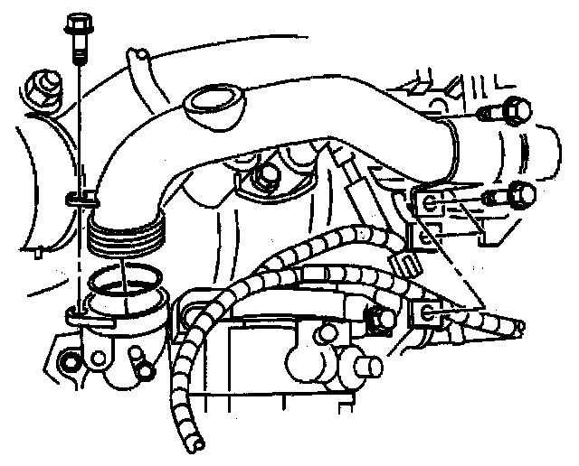 8. Remove the bolt retaining the water outlet tube to the thermostat housing.