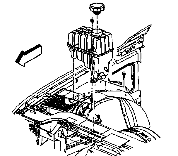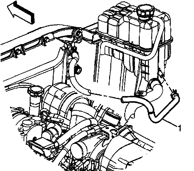7. If equipped with a 6.6L engine,,remove the surge tank inlet hose (1) from the surge tank.
