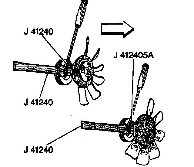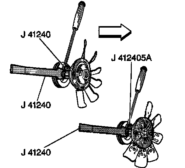 7. If equipped with a 4.3L, 4.8L, 5.3L, 6.0L, or 8.1L engine, install the J 41240 to the fan clutch.