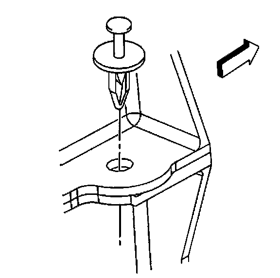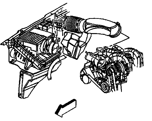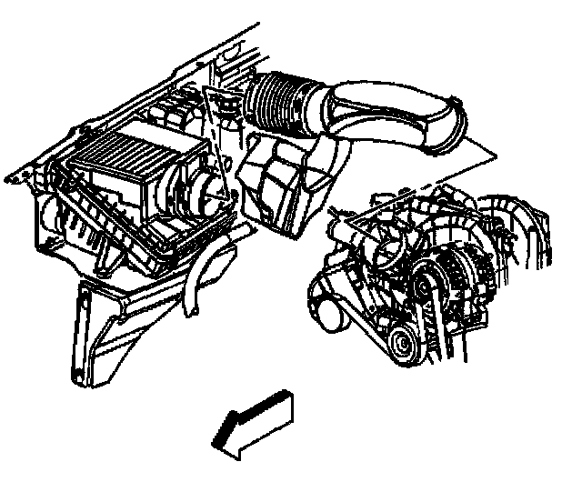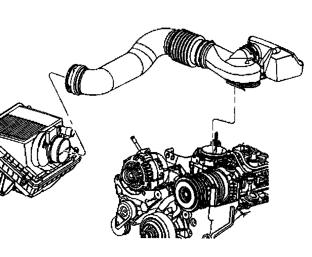 ^ Install the air cleaner outlet duct. Align the hinge clip with the lip on the throttle body. Pivot the air cleaner outlet duct and resonator downward until the mounting stud is through the hole.