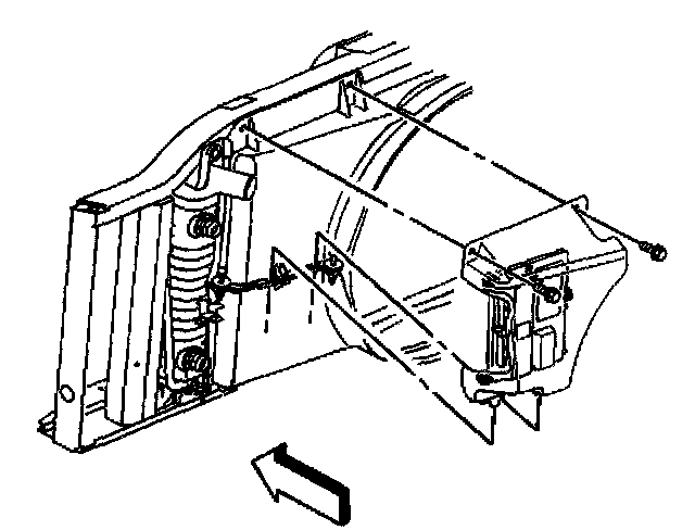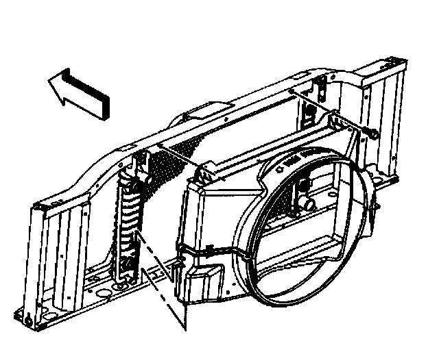 12. If equipped with the 6.0L, 6.6L, or 8.1L engine with the RPO M74 transmission, push down the TCM cover in order to clip the cover to the fan shroud.