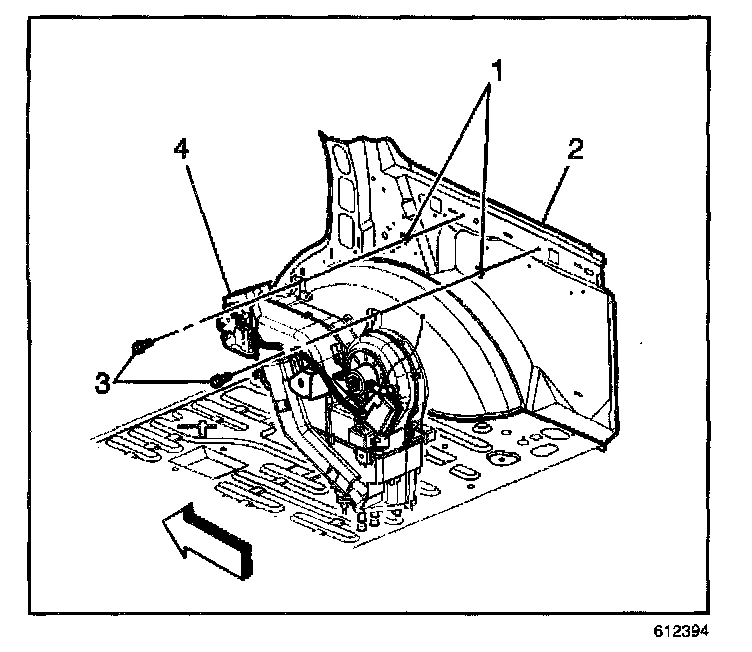 4. Install the auxiliary HVAC module assembly (4) to the vehicle.