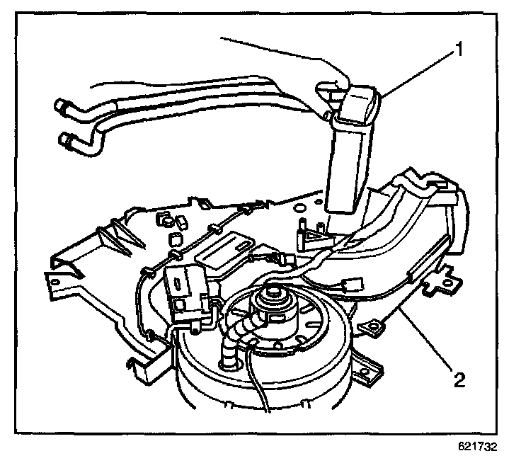 11. Install the nuts (2) that secure the auxiliary HVAC module to the vehicle.
