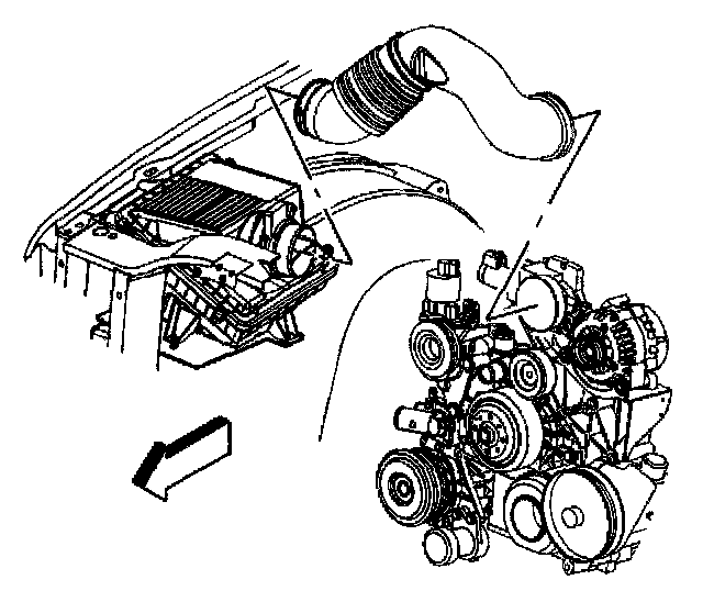 Important: Align the arrow at the throttle body end of the duct with the throttle body attaching stud.