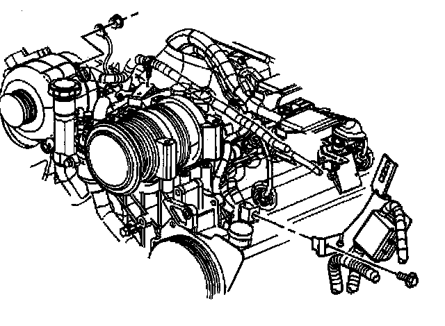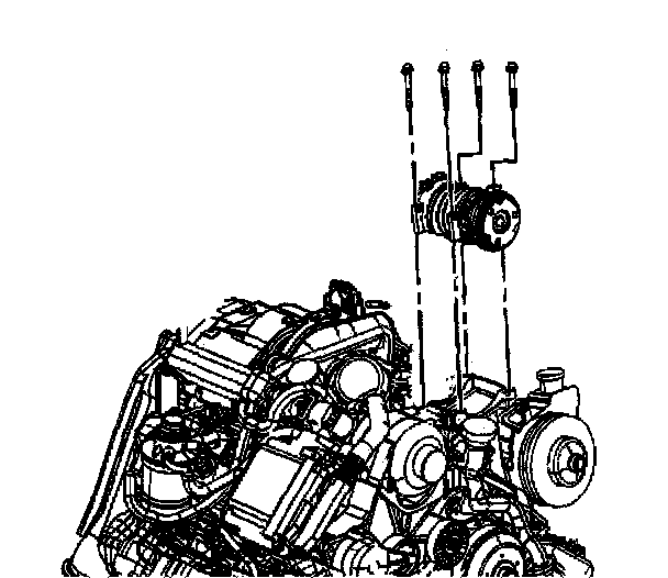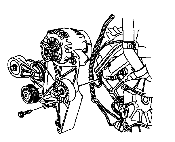 19. Remove the heater outlet hose bracket bolt from the generator bracket.
