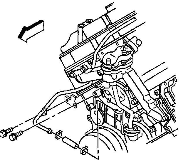 28. Remove the fuel line bracket from the thermostat housing crossover.