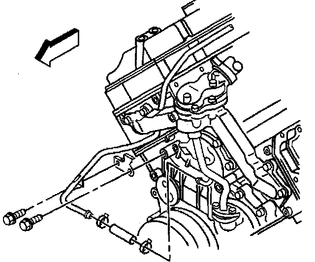 25. Remove the bolt retaining the heater pipe to the thermostat housing crossover.