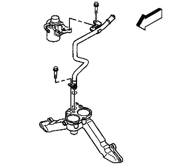 12. Install the bolt retaining the heater pipe to the thermostat housing crossover.