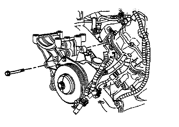 17. Remove the power steering pump mounting bracket and secure to the side.