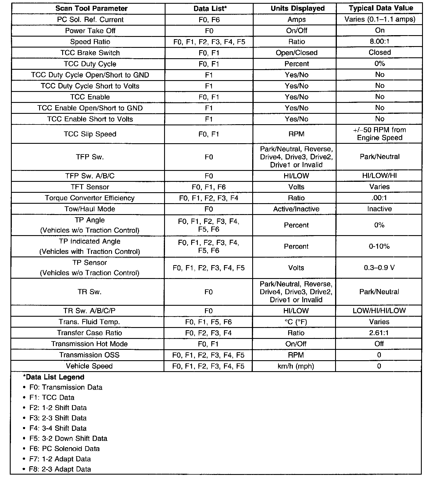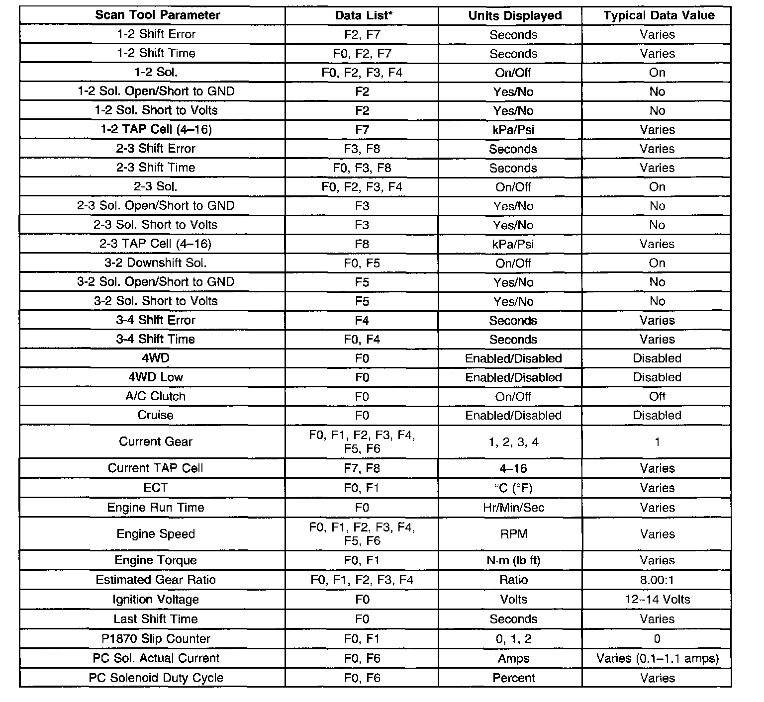 Only the parameters listed below are used for diagnosing. If a scan tool displays other parameters, the values are not recommended by General Motors for use in diagnosis. Scan tool values below were recorded under the following conditions: