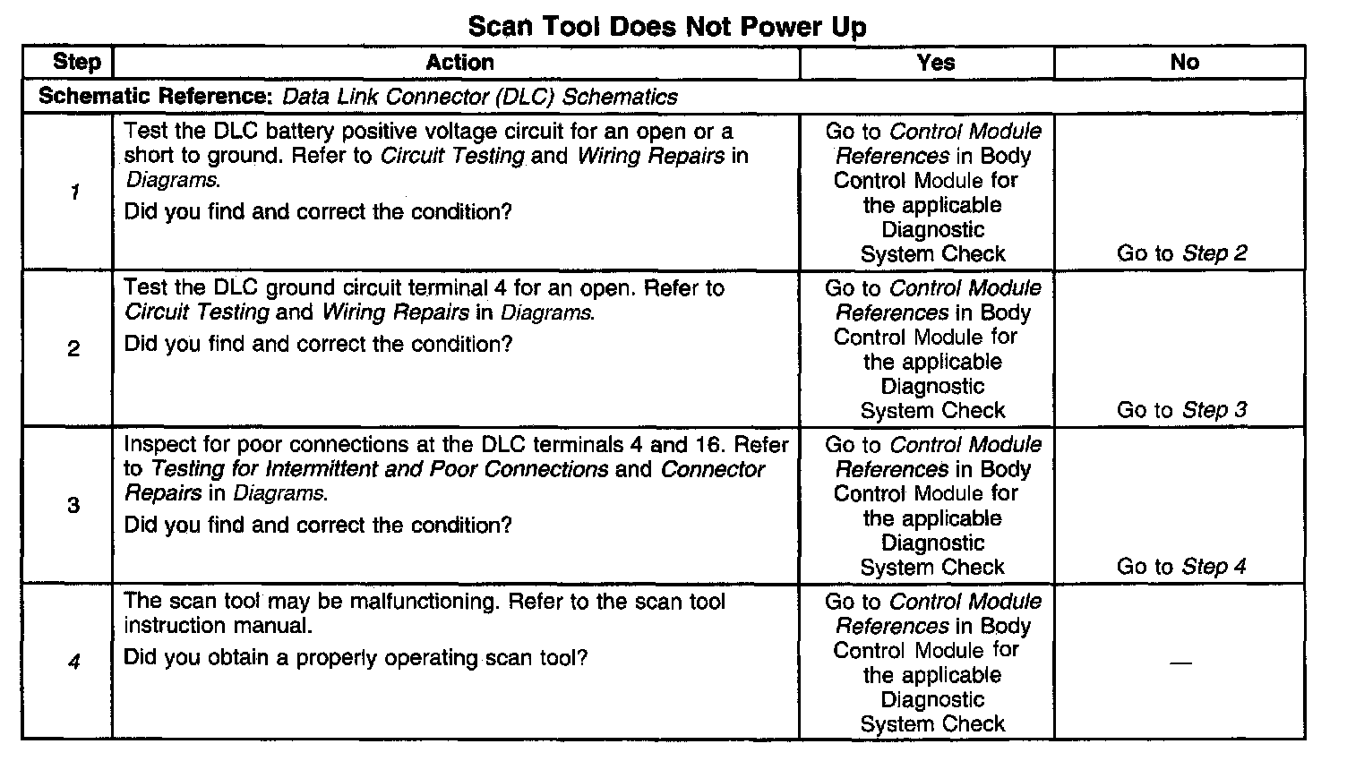 4. The DLC battery positive voltage and ground circuits are functioning. The malfunction is within the scan tool.