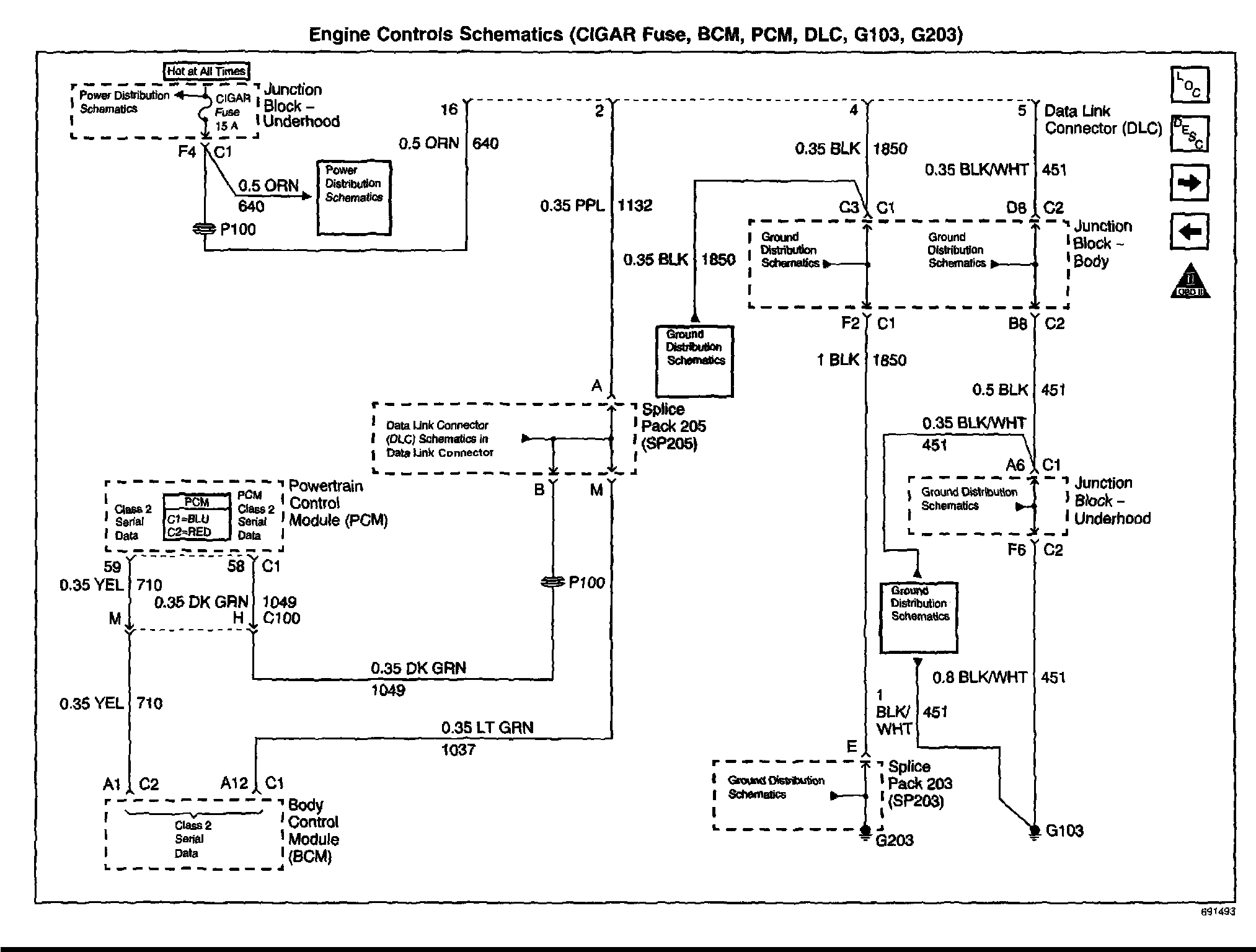 Engine Controls Schematics: CIGAR Fuse, BCM, PCM, DLC, G103, G203: