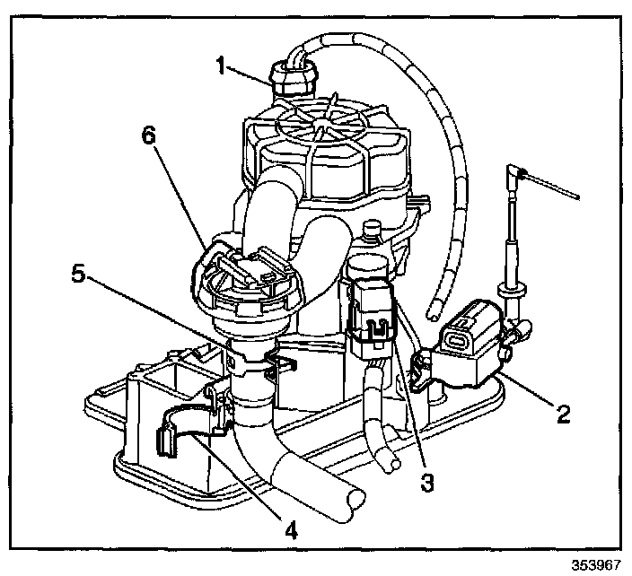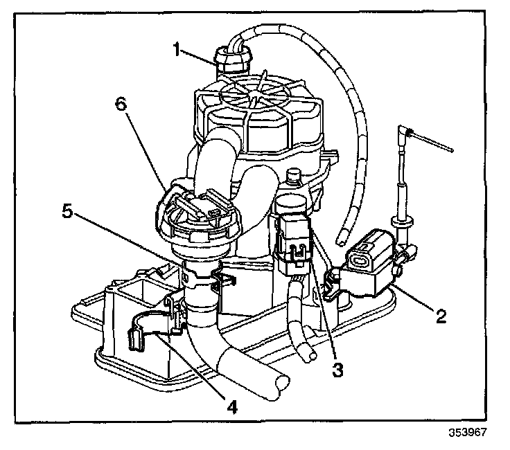 2. Remove the vacuum hoses from the AIR solenoid vacuum ports (3, 4).