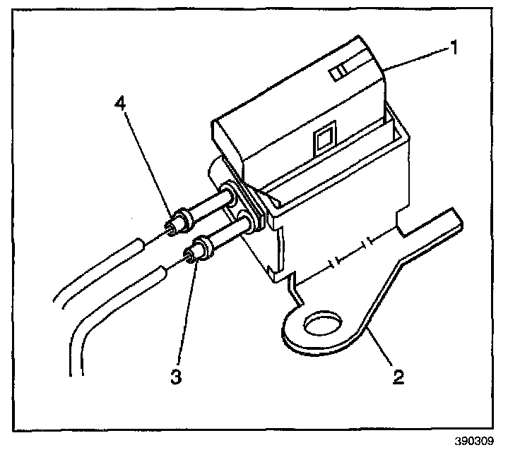 3. Install the fastener securing the AIR solenoid mounting bracket to the base. Ensure the locating tab on the mounting bracket (2) is seated properly.