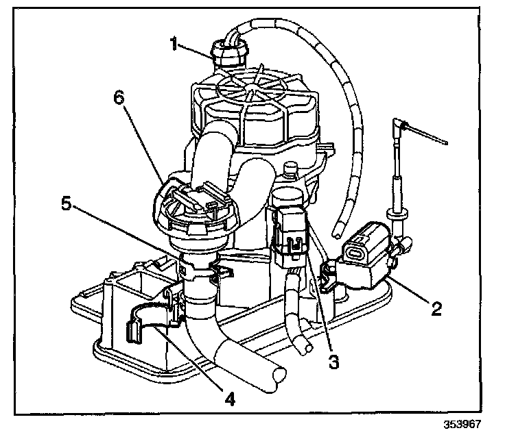 4. Remove the vacuum line (5) from the vacuum port (4) of the AIR pump shut-off valve.