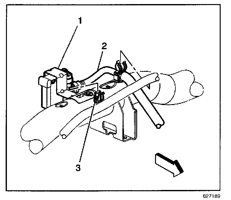 1. Install the EVAP canister vent valve to the EVAP canister vent valve bracket (1).