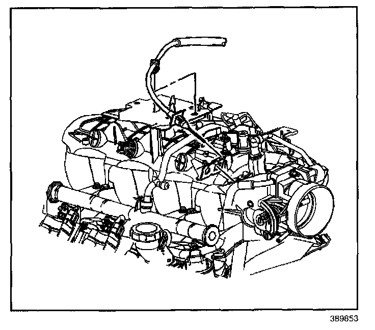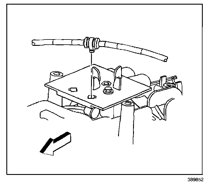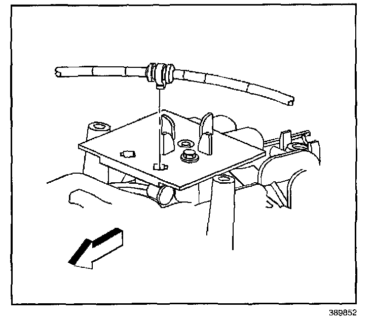 1. Install the accelerator cable through the dash panel. Snap the accelerator cable cover tangs (1) through the dash panel.