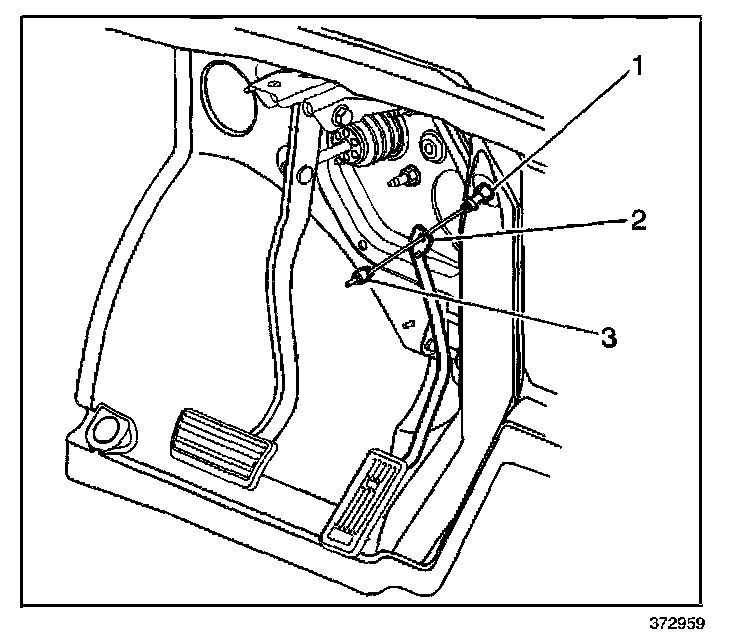 3. Seat the retainer (3) in the accelerator pedal lever (2).