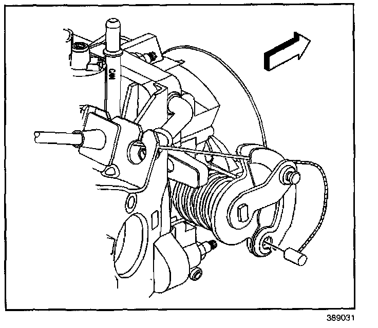 5. Slide the accelerator cable into the slot on the accelerator cable bracket. Snap the locking tab into position.