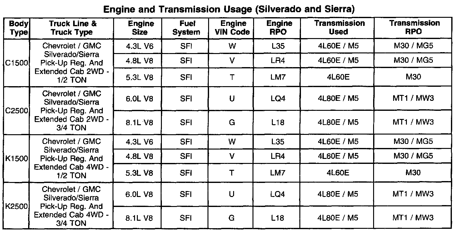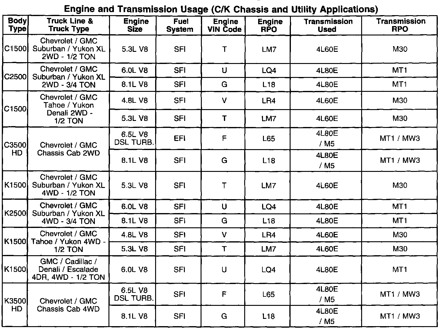 C 1500 Yukon 2WD V8-5.3L VIN T