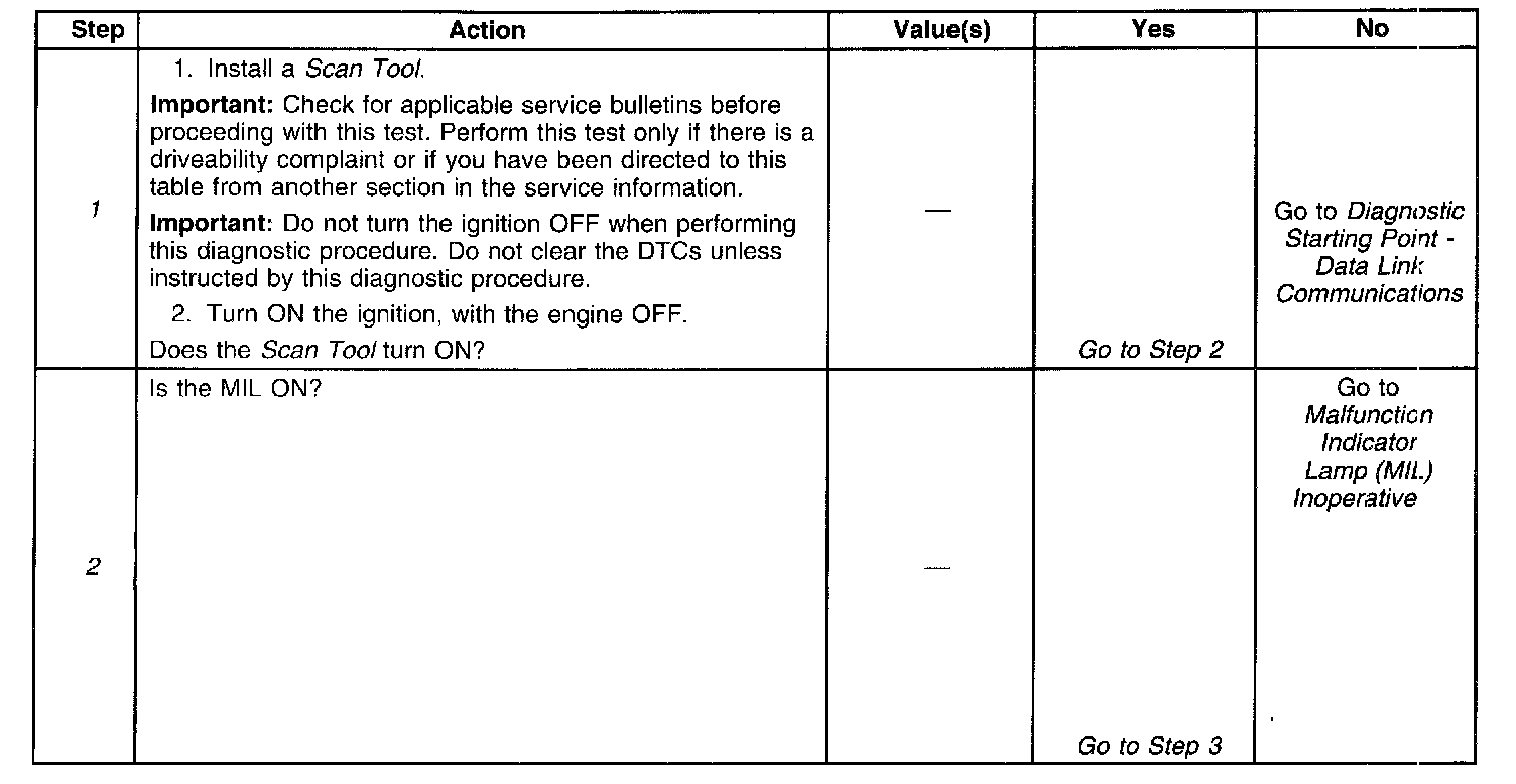 2. The MIL should illuminate whenever the ignition is ON and the engine is not running.