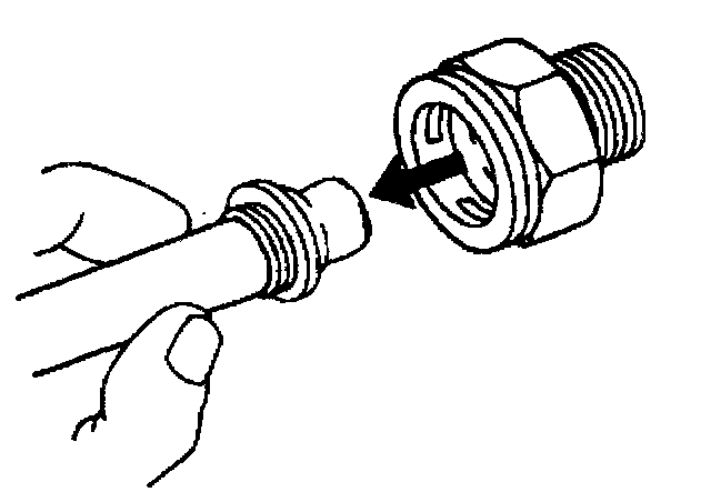 11. Do not use the plastic cap on the cooler line in order to install the cooler line into the fitting.