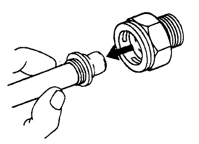 18. If you cannot position the plastic cap against the fitting, remove the retaining ring from the quick connect fitting. Check the retaining ring and the tube end in order to ensure neither is bent. Replace the cooler line or the retaining ring if necessary, and reinstall the cooler line per the installation procedure.
