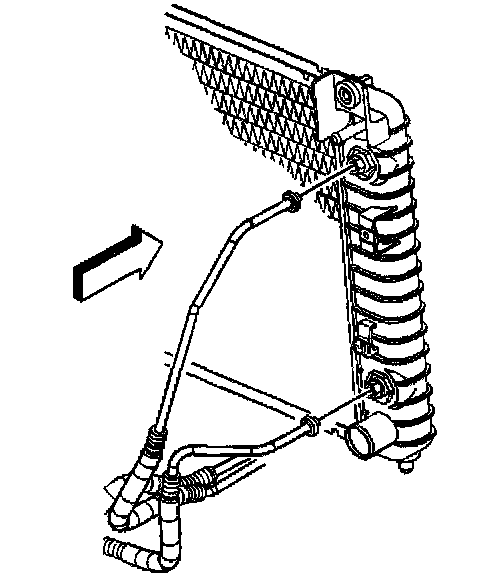 10. For vehicles with 4.3L engines and auxiliary cooling, remove the cooling lines from the radiator.