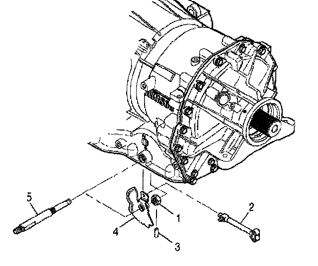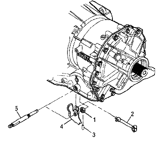 1. Place the new detent lever (4) in position in the main housing. Rotate the detent lever to engage the park pawl apply assembly (2)..Reinstall the selector shaft (5) through the selector shaft seal and through the detent lever (4).