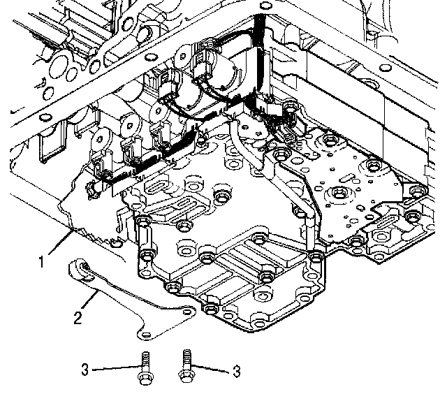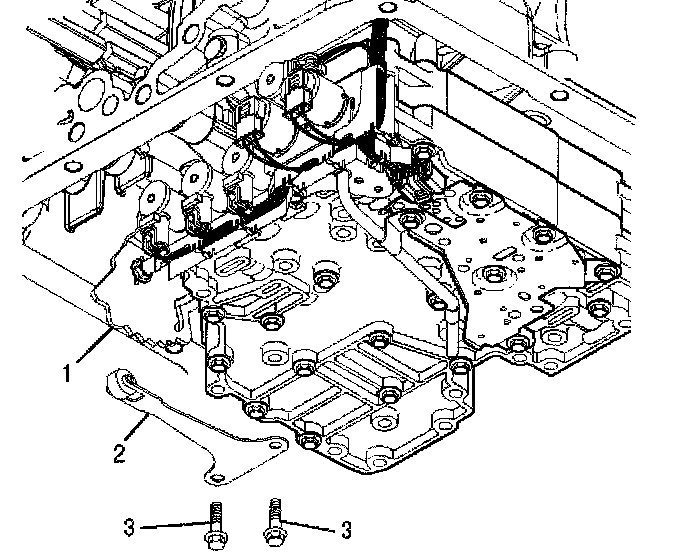 2. Remove the two detent spring bolts (3). Remove the detent spring assembly (2).