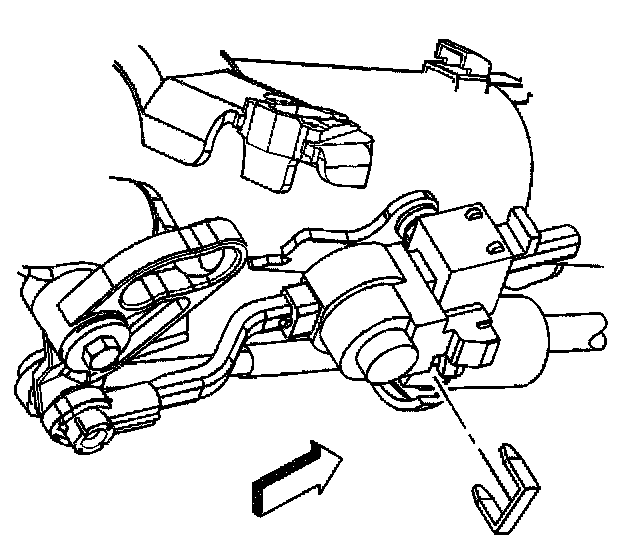 20. Remove the shift cable conduit end fitting from the steering column bracket.
