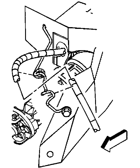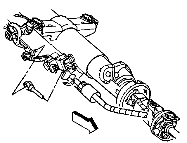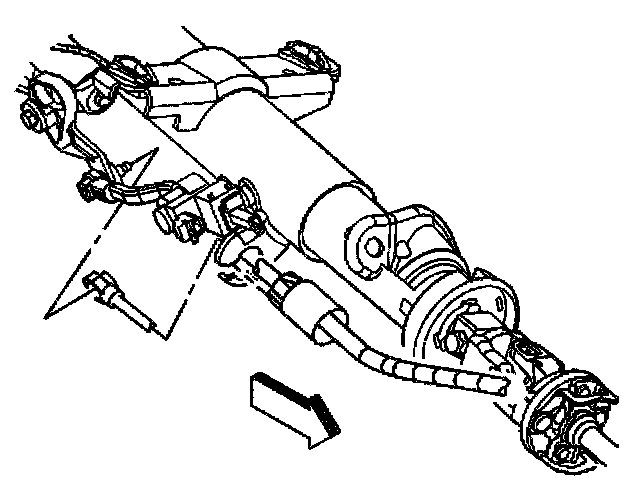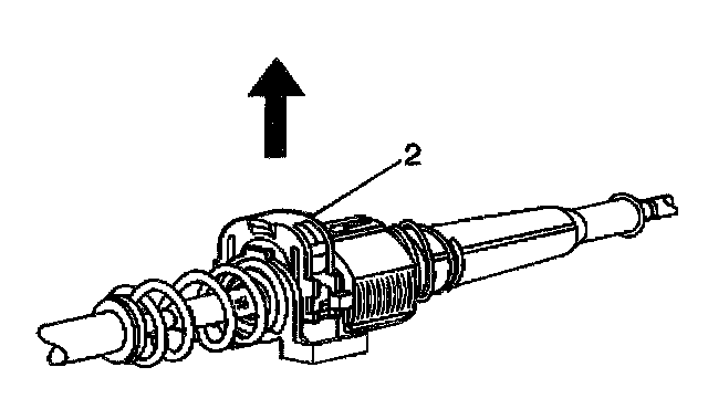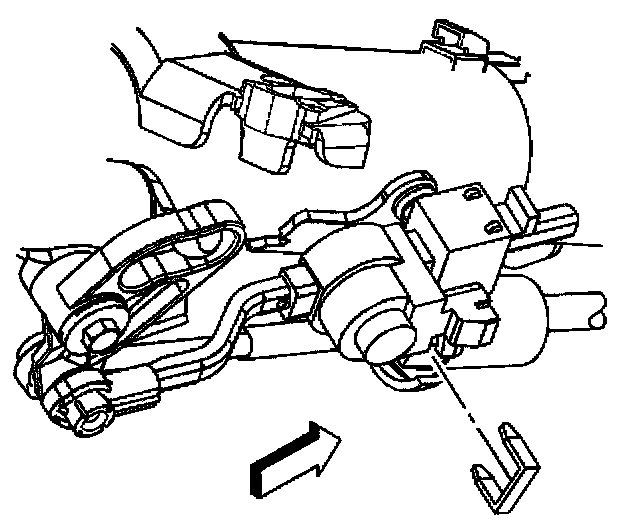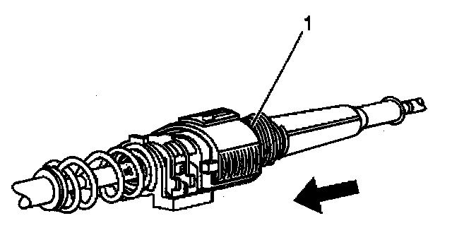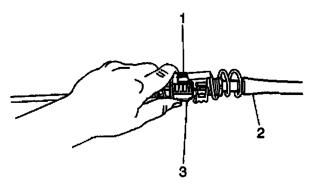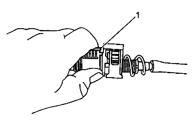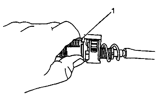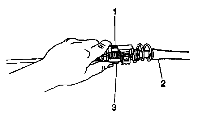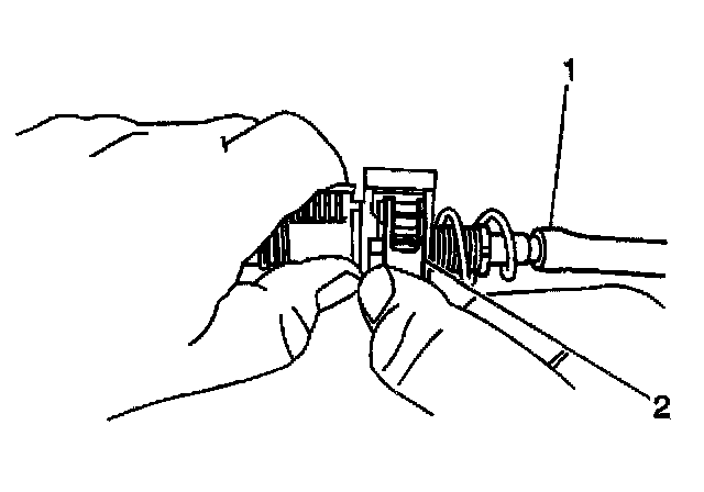 Depress both tangs on the conduit end fitting and push axially toward the rear of the vehicle.