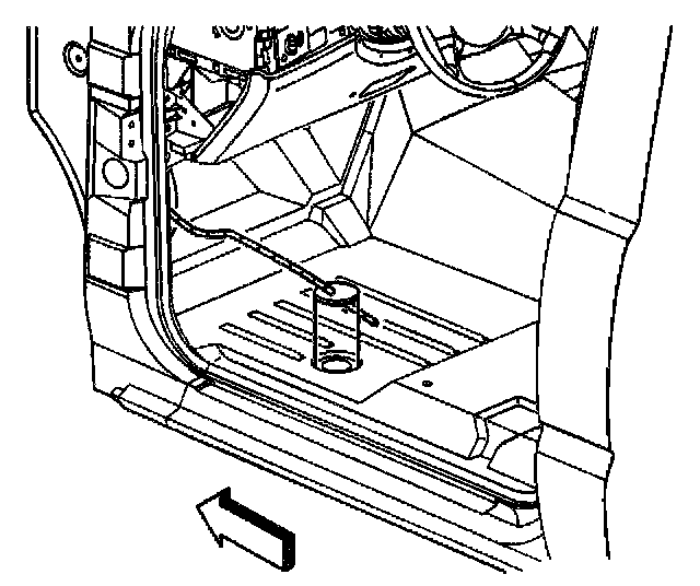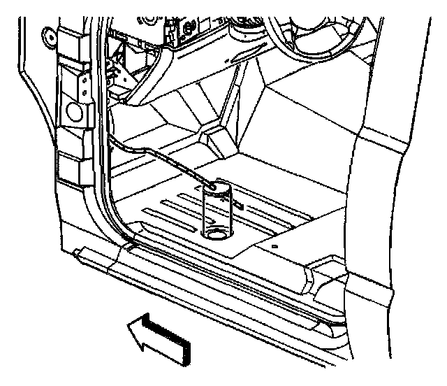 4. Route the shift cable through the hole in the floor panel. Install the shift cable grommet to the floor panel.