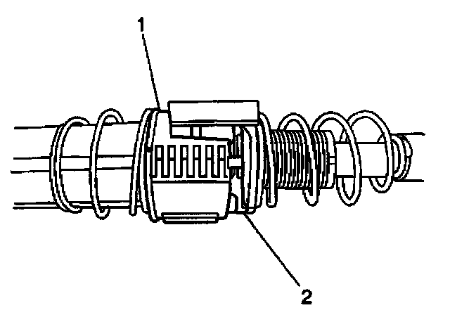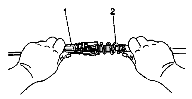 17. Push the end of the shift cable (2) inside the end of shift cable (1) until the blue spring on shift cable (2) is fully compressed.